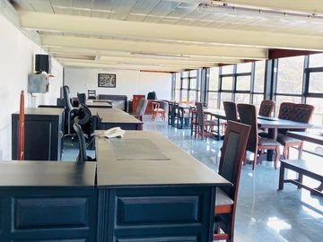 The office space, totaling 250 square meters, is divided into three offices, offering a comfortable and productive environment. Additional features of the property include a borehole for water supply, ample parking space, and three-phase electricity to support power-intensive activities.