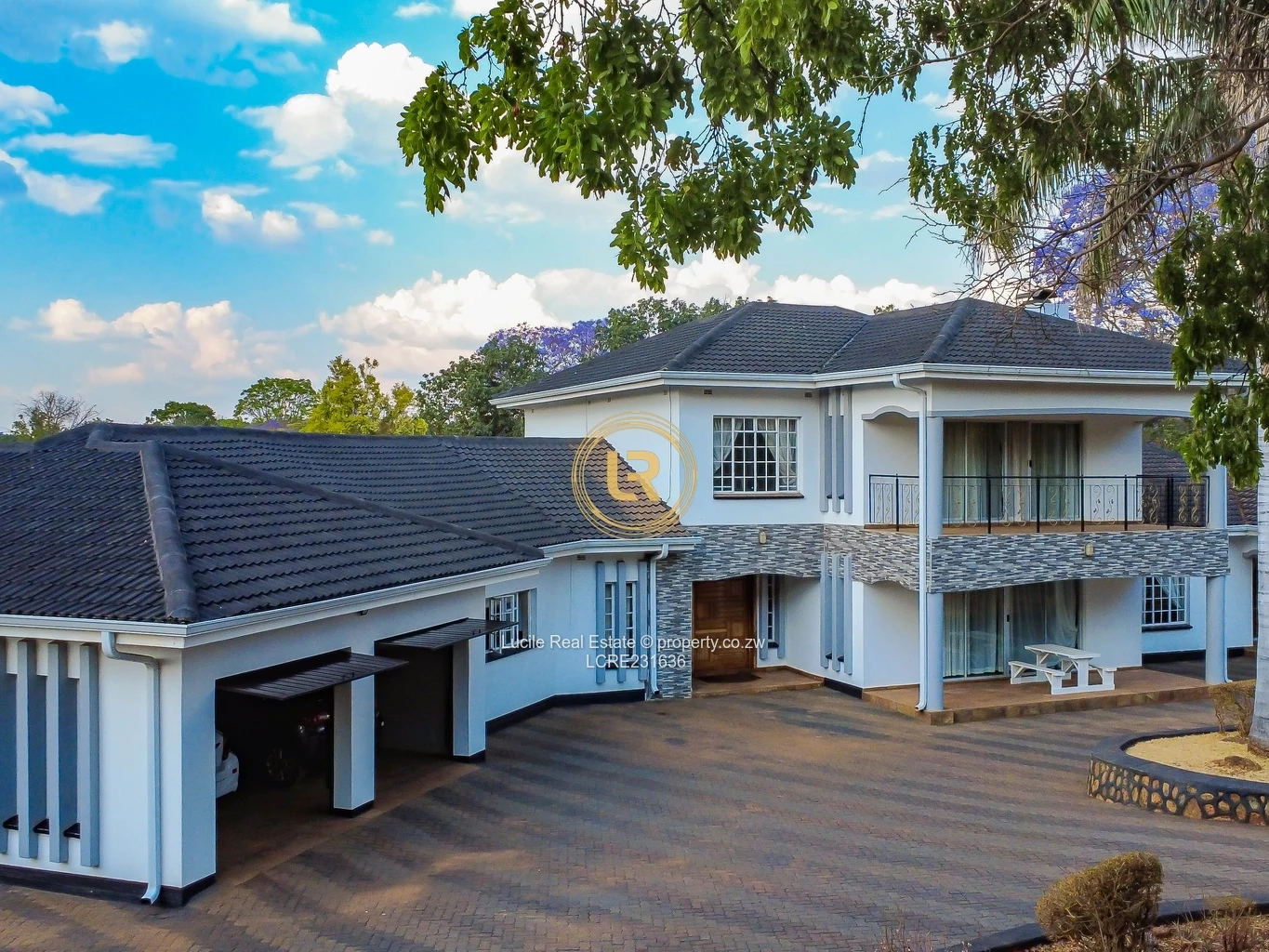 This elegant family home in Borrowdale sits on approximately 4,065 square meters of land and offers both comfort and functionality. The property features a double lock-up garage for two cars, a cottage used for storage, a 40-meter borehole, and two-bedroomed staff quarters with their own toilet and kitchen.